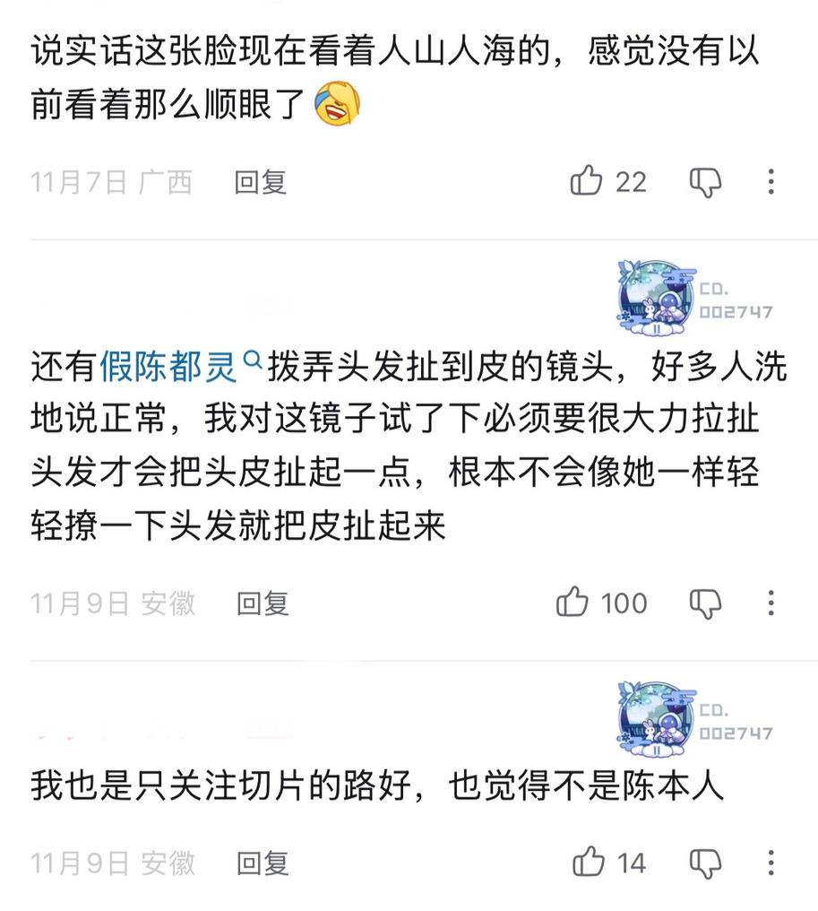 “人皮面具”“克隆人”“真人已被替换”……如此骇人听闻的说法,是最近在演员陈都灵身上出现的高频词,她遭遇了一场令人匪夷所思的网络谣言攻击。有网友通过剪辑其影视片段,配以“人皮面具”“克隆人”等耸动字幕,散布陈都灵已“被男性替换”的荒谬言论。面对恶意中伤,尽管陈都灵方面迅速回应,通过律师函要求平台删除不实信息,追究造谣者法律责任,始作俑者亦已删除视频并道歉,但网络空间仍残留着大量质疑她“是否为真人”的留言。甚至有人在其出席场合试图近身拍摄,以找到她“不是真人”的证据。